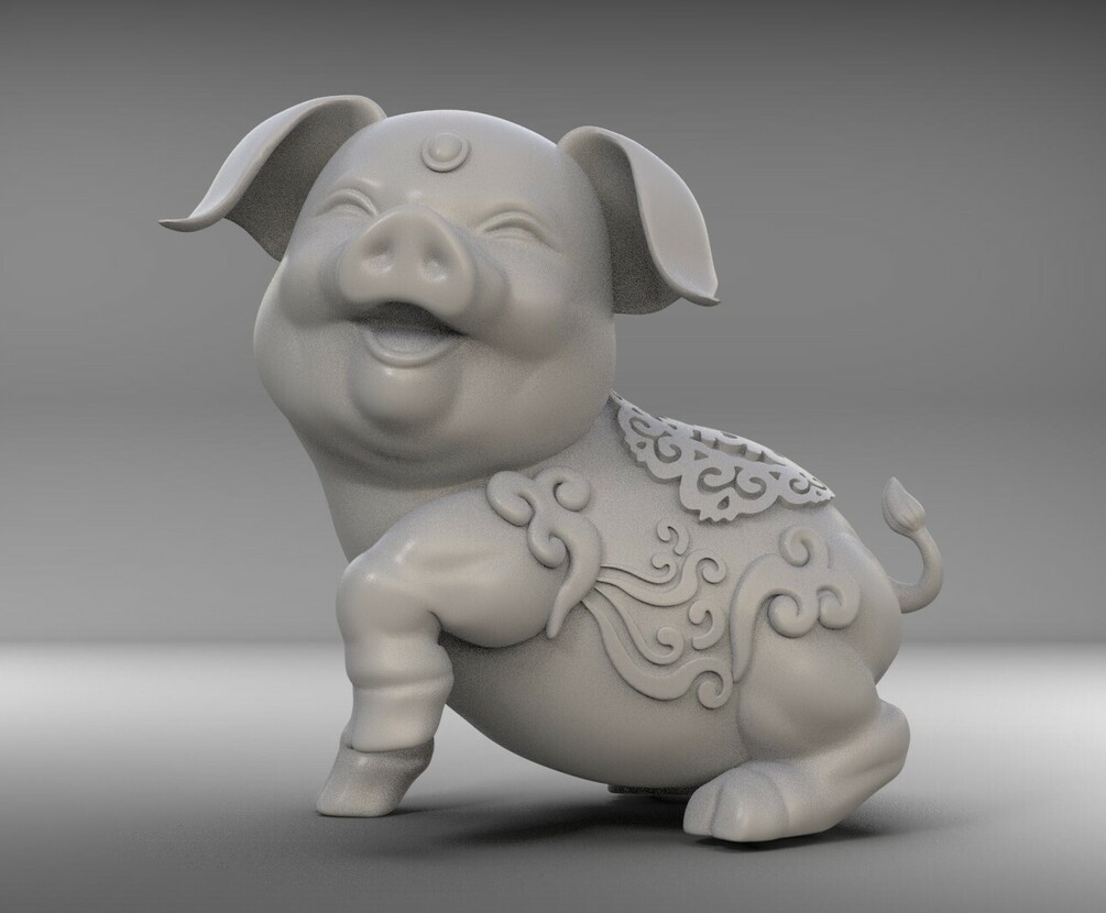 Printable 3D model of a cute chinese lucky pig